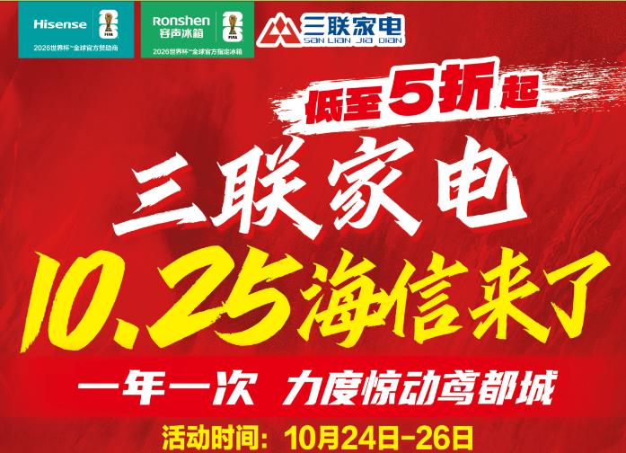 鲁网10月17日讯为回馈广大消费者长期以来的支持与厚爱,三联家电联合海信集团将于10月24日至10月26日重磅推出“海信来了”年度惠民活动。本次活动、通过政企双重补贴政策,打造覆盖全品类家电的消费盛宴,成为本年度购入海信及容声家电的绝佳时机。