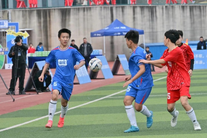 初中组决赛场上,贵州师范大学贵安新区附属初级中学与贵阳市南明区李端棻中学展开巅峰对决,贵阳市第十八中学与贵阳市南明区华麟学校奋力拼搏。少年们带球突破如风,传球配合行云流水,每一次射门都凝聚着整个赛季的沉淀。看台上,掌声、呐喊声此起彼伏,将赛场气氛一次次推向高潮。