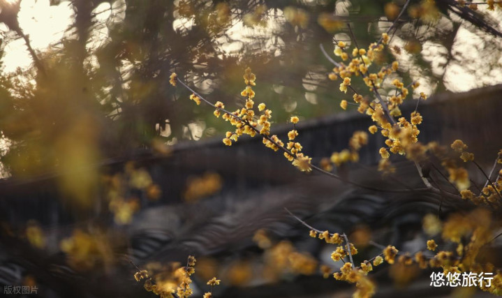 昭灵观腊梅倚着道观红墙,虬曲枝干上黄花点点。狮子林在暗香疏影楼或问梅阁,透过冰裂纹花窗看腊梅,框景如画,枝影成诗。