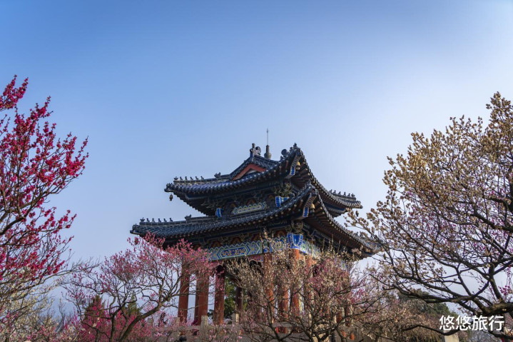 灵谷寺的梅花,幽香中透着禅意。愚园梅花与中式园林的假山凉亭相互衬托,毗卢寺观音阁前和寺庙的院墙下,有几株高大的梅花,非常幽静。