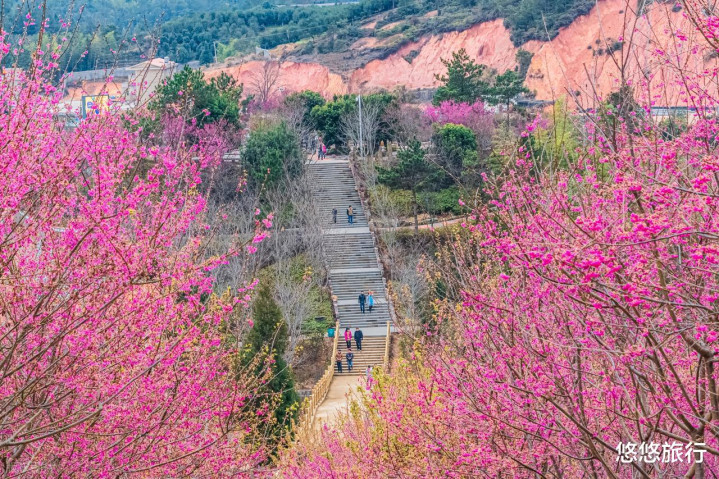 坐上粉红色的玻璃顶小火车徜徉其间,满园春色尽在眼前。想拍清晨日出晨雾和日落夕阳,可以在附近住上一晚。