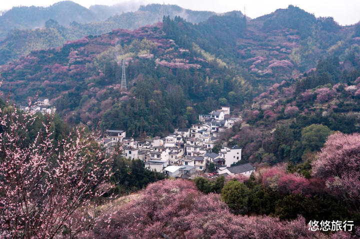 2月的卖花渔村,是梅花的海洋,山坳里的徽派村落,完全被漫山遍野的梅花淹没。